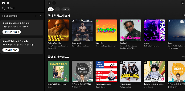 10. 스포티파이 3개월 무료 체험 가입이 완료되었습니다. 스포티파이 열기를 선택해서 자유롭게 음악을 검색해 보세요.