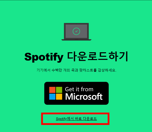 7. 스포티파이에서 다운로드 하기를 선택 후 설치파일을 깔아줍니다. (PC에서)
