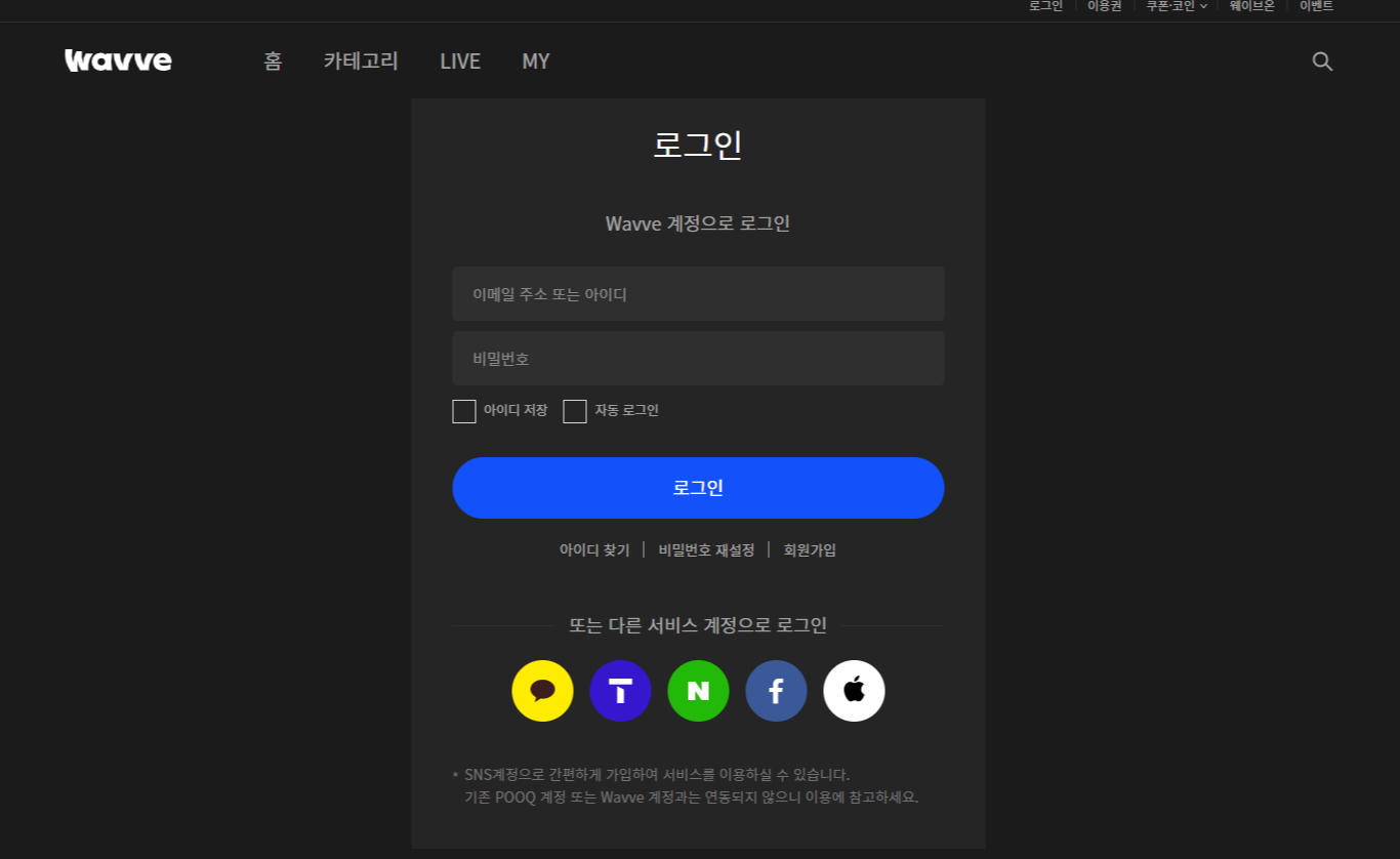 1. 웨이브에 새로 회원 가입을 합니다.